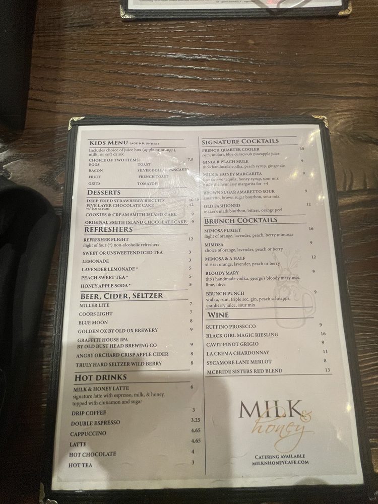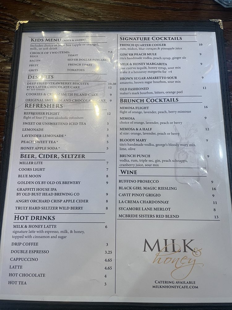 Milk & Honey Cafe Menu (2025 Update)